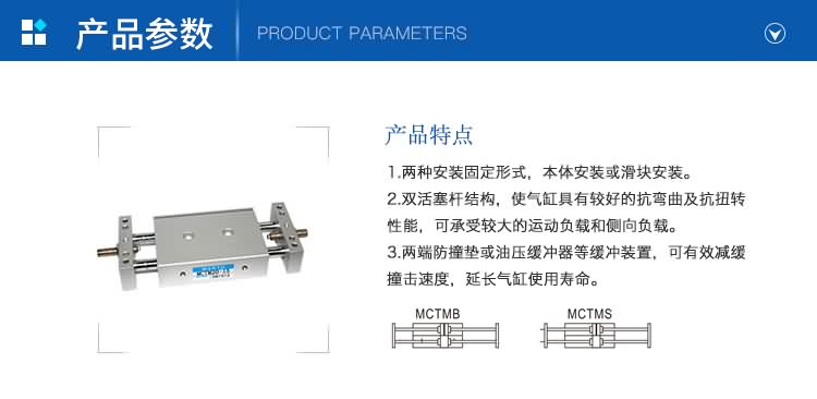 3.兩端防撞墊或油壓緩沖器等緩沖裝置,可有效減緩撞擊速度,延長(zhǎng)氣缸使用壽命。