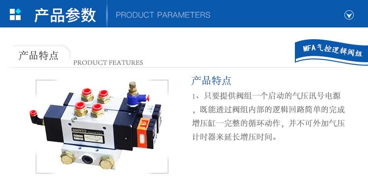 1.只要提供閥組一個(gè)啟動(dòng)的氣壓訊號(hào)電源,既能透過閥組內(nèi)部的邏輯回路簡單的完成增壓缸一完整的循環(huán)動(dòng)作,并不可外加氣壓計(jì)時(shí)器來延長增壓時(shí)間。